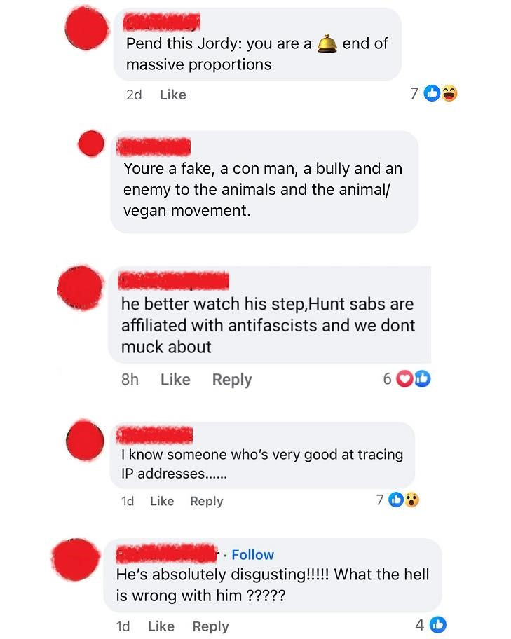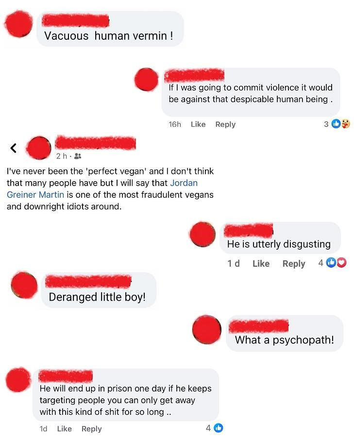 I’ve seen these vegans say Jordan, the founder of VCO is an evil little runt, dangerous and needs to be investigated by the police. That he has mental issues and should be locked up. They call him vacuous human vermin, deranged, a psychopath, disgusting. One of them said if they were going to commit violence it would be against him.